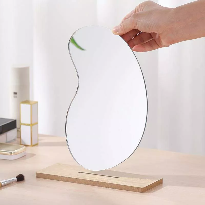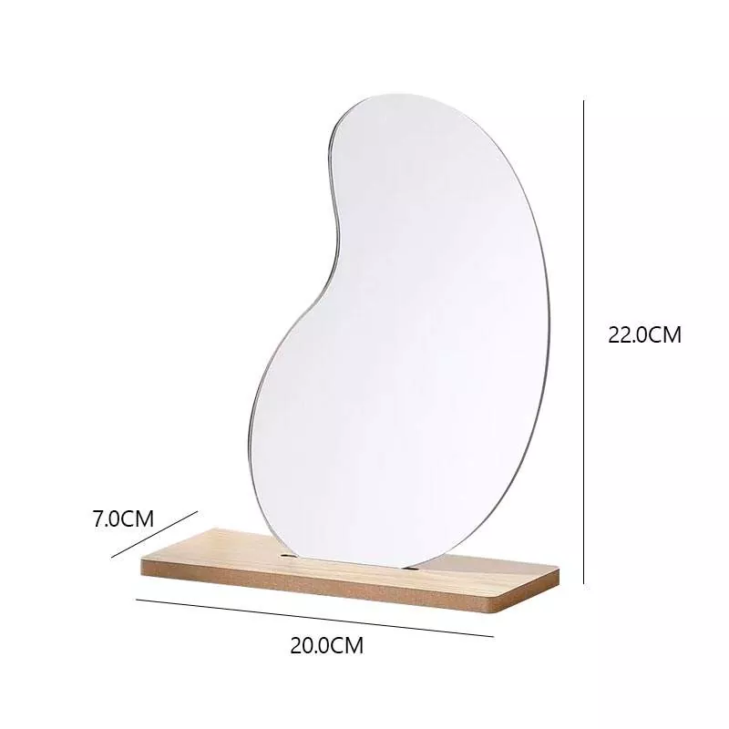 Bu qeyri-müntəzəm dalğalı stolüstü güzgü müasir ev dekorasiyası ilə mükəmməl qarışan minimalist, bədii siluetə malikdir. Yüksək dəqiqlikli şəffaf şüşə və hamar taxta baza ilə hazırlanmış, makiyaj tətbiqi, dəriyə qulluq qaydaları və gündəlik baxım üçün ideal olan təhrifsiz əks etdirir.