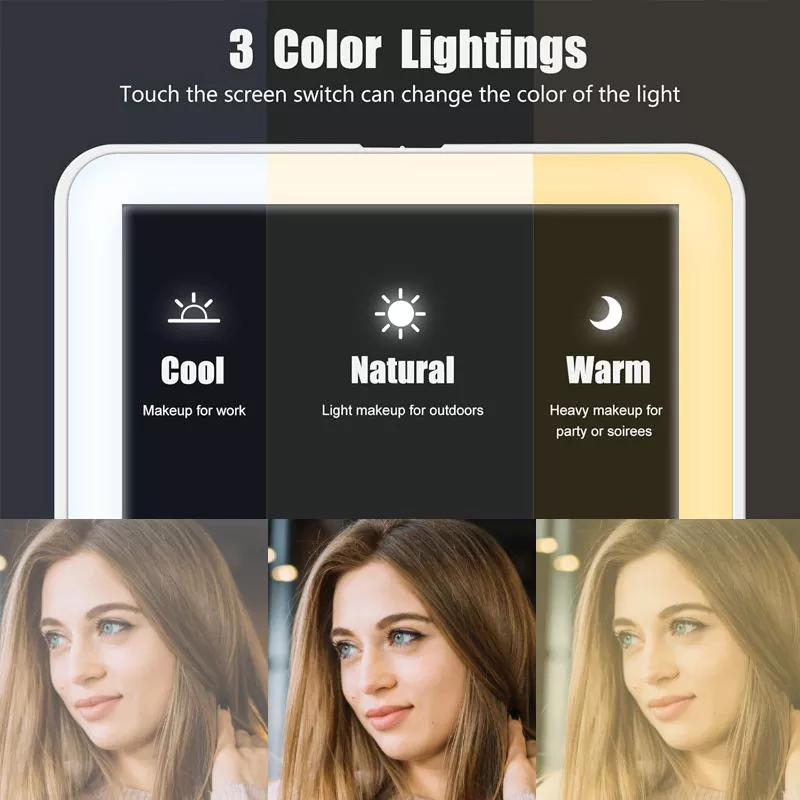 Bu Stolüstü Led Makiyaj Güzgüsü bütün makiyaj ssenarilərinə uyğun olaraq üç tənzimlənən işıq rejiminə (sərin, təbii, isti) malikdir. Sərin işıq iş makiyajı üçün idealdır, açıq görünüş üçün təbii işıq və axşam tədbirləri üçün isti işıqdır. Yumşaq, titrəməyən LED üzük, hətta tutqun mühitlərdə də dəqiq makiyaj tətbiqini təmin edərək, real rənglərin göstərilməsini təmin edir.